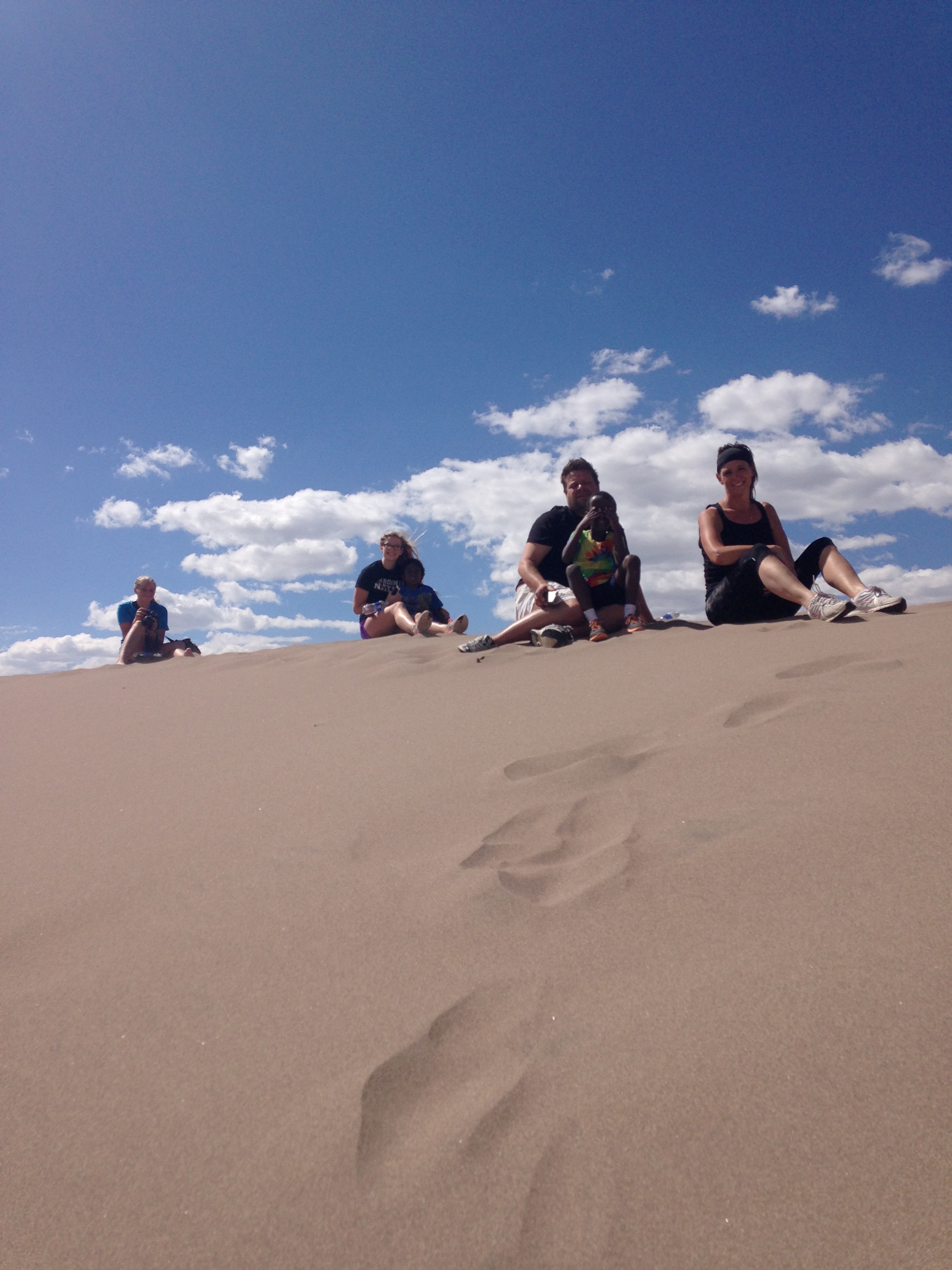 Today our first stop was at The Great Sand Dunes in Colorado. It took 2 hours to climb up and down them. Although the temperature was nice it was windy. And windy in Minnesota is different than windy on the sand dunes. The wind would blow and it would feel as if a million little needles were constantly stabbing you. And if that doesn’t sound pleasant enough the uphill seemed as if it was vertical. 10 steps of walking felt like you ran 10 miles. But despite all that we made it to the top… Or close enough. And, it was so beautiful!