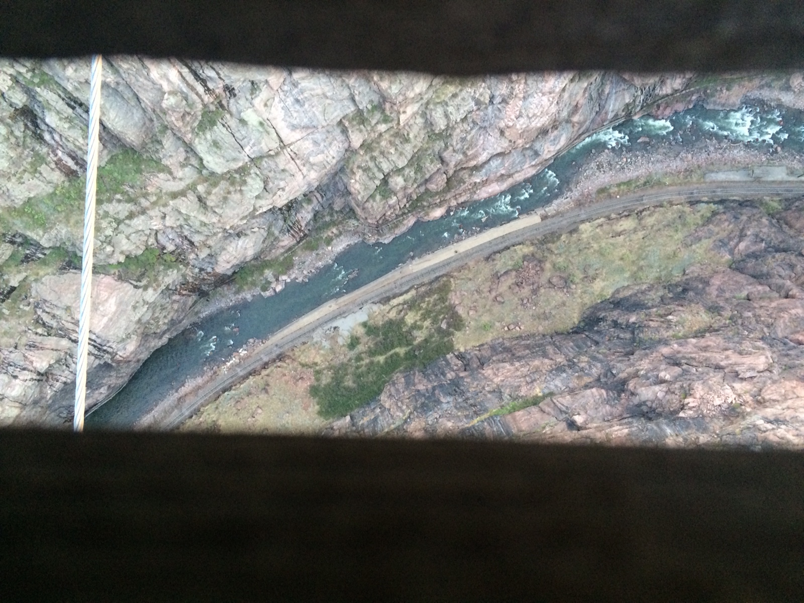 This is a picture through two of the boards of the bridge floor.