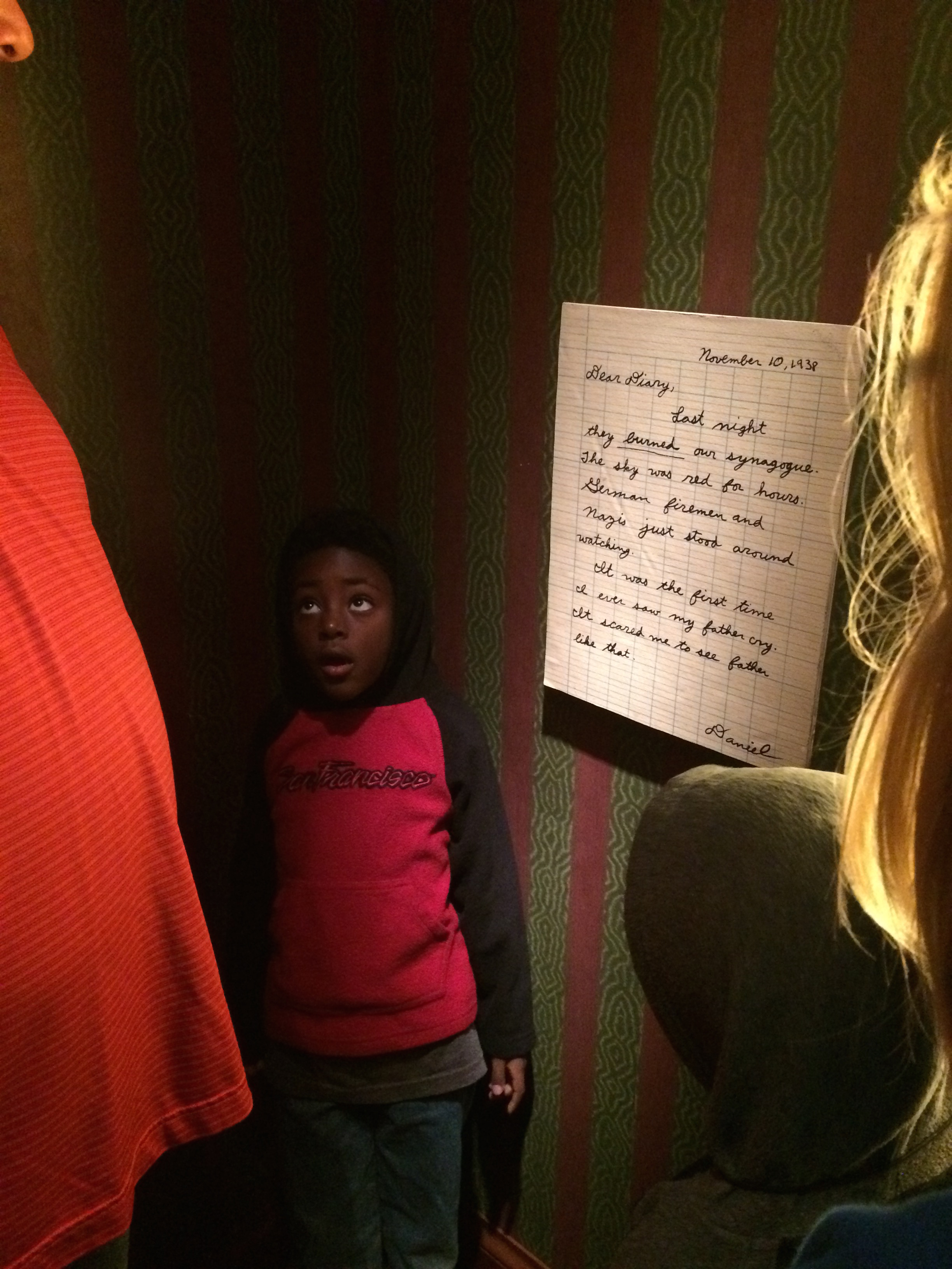 We walked through Daniel’s story. He was a boy that was jewish and it talks about his life during the holocaust. Burka and Buche colored a picture for him. Then we saw the holocaust Memorial.